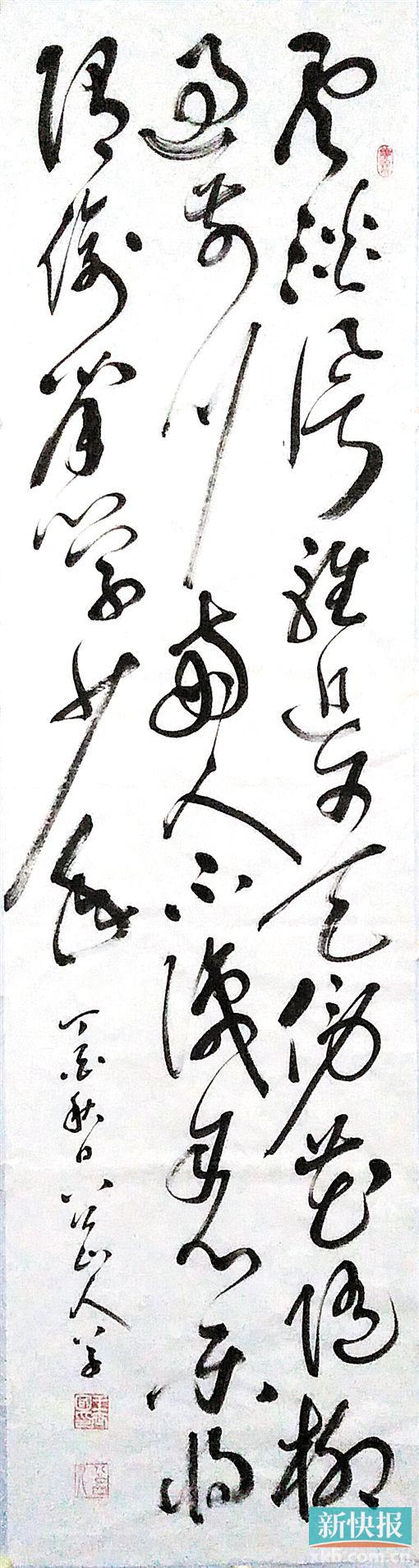 王世国:作为广东省书法评论家协会主席,一方面有责任要把协会的工作开展好,另一方面要带头研究书法艺术,大力宏扬书法文化。理论要与实践相结合,每天写字是必须的,狂草就是我的主攻山头。在华师大讲课时,我就是属于“激情派”的,你看我一讲话就容易激动;狂草就是我的内心豪情激荡的艺术表达,多年来遍临大家书帖,仅怀素大草《千字文》我就临了百余通。其实,草书是书法艺术的巅峰。各种书体,只有写草书可以成“草圣”。草书如同在钢丝上跳舞,难度极大,但是它的艺术表现力又极大。所以,尽管千百年过去了,而以草书见长的书法大家如张芝、张旭、怀素、黄庭坚、祝枝山、王铎等,屈指可数。所以,草书艺术的发展空间依然很大。当然,孙过庭说“草贵流而畅”,但要表现出草书这种审美特质,非常不容易。许多人包括张旭、怀素,直到林散之这样的大家,一写得流畅便不能精确提按,做不到主画重、次画轻,点画线条就像面条一样;而当代一些书家写草书干脆就像是“鬼画符”,乌糟邋遢。我就是要做书法艺术巅峰的攀登者,努力实现“作草如真,点画分明”,流畅地表达胸中浩荡情怀。