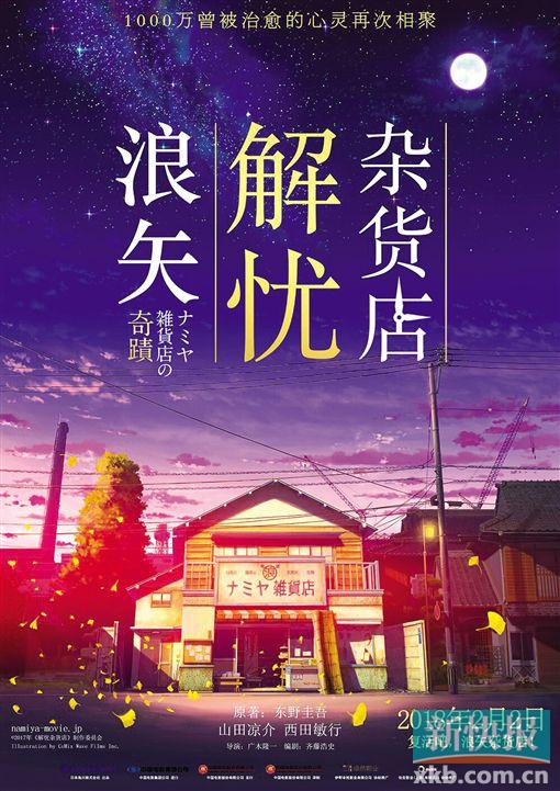 电影《浪矢解忧杂货店》根据日本作家东野圭吾的同名小说《解忧杂货店》改编而成,故事讲述三个少年做了坏事躲在已经废弃的杂货店,结果偶然发现了杂货店邮箱里有一些寄给杂货店老板的信,而这些信居然都来自32年前。那一夜,也成为了改变他们人生的“奇迹”一夜。