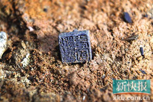 五号墓位于墓园北部,处在刘贺墓的正北方向,墓前有回廊形地面建筑遗迹。海昏侯墓葬文物保护及技术保障负责人、中国社科院考古研究所副研究员李存信在会上介绍说,印章出土位置在墓主人腰部的左侧,方寸大小,金属质地,龟纽。印上文字分布如下:左上为“刘”,右上为“充”,右下为“国”,左下为“印”。而刘充国是刘贺的长子。