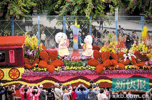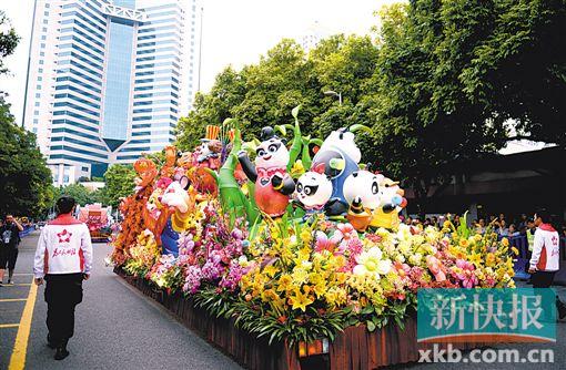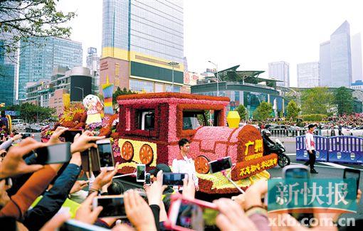 作为今年 “广州过年 花城看花”广州迎春花市系列活动的“重头戏”,花车大巡游于昨天在天河体育中心拉开帷幕。参加此次巡游的花车共有19辆,其中主题花车1辆,利用园林造景手法,以各类鲜花装饰为主,突出“花开广州·福至羊城”; 11个行政区分别制作1辆花车,反映各区特色风貌和形象;南航、岭南、广汽、广药、长隆、正佳等6个市重点企业各制作1辆花车,突出展现企业品牌形象和旅游特色;还特别邀请对口扶贫省份贵州制作1辆花车参加此次巡游活动,突出反映区域友好往来和当地旅游特色。