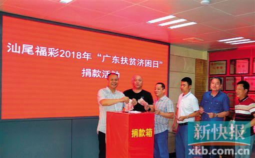 新快报讯 记者陆妍思 通讯员叶海纯报道 今年是开展“广东扶贫济困日”活动的第九年,为进一步弘扬福利彩票“扶老、助残、救孤、济困”的发行宗旨,助力打赢扶贫攻坚战,日前,汕尾市福彩中心组织开展“扶贫济困日”捐款活动,全体工作人员踊跃参与了此次活动,纷纷慷慨解囊,共同为扶贫济困日活动助力加油,充分展现新时代福彩人乐善好施的精神风貌。