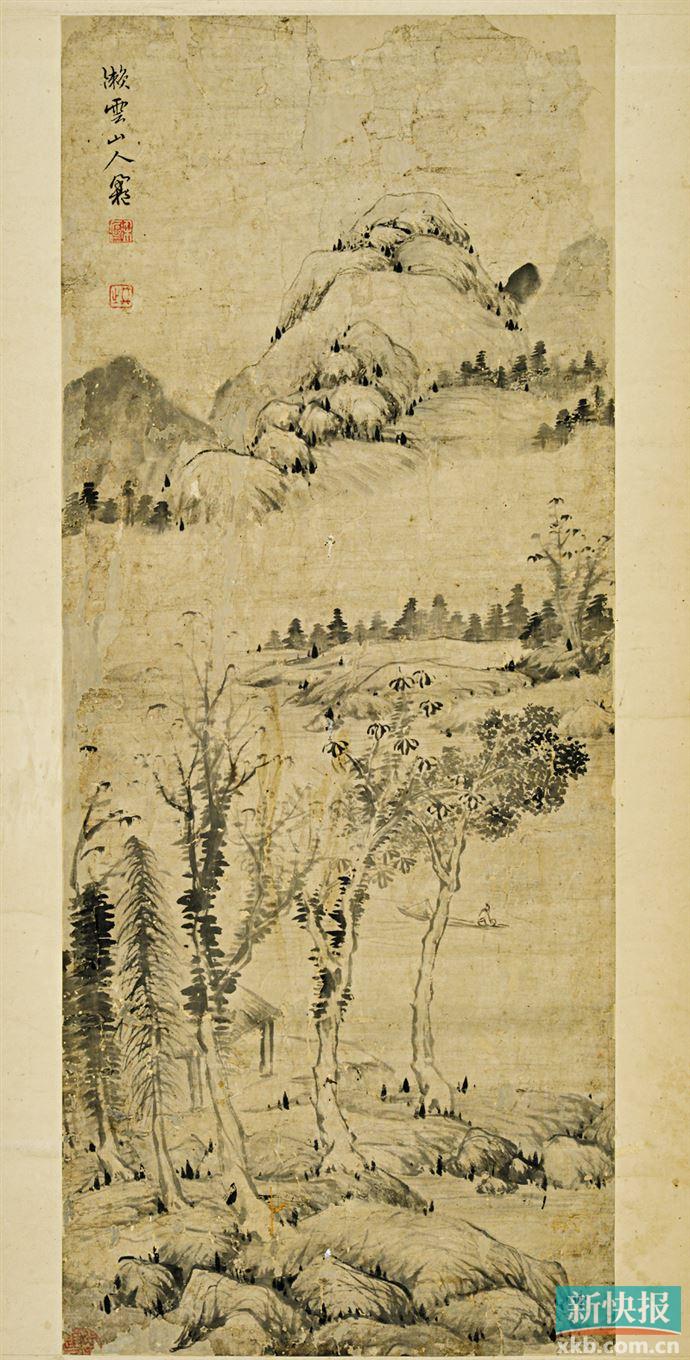 梁枢传世书画篆刻作品甚少。无聊斋藏其山水画轴,纸本,纵68厘米、横34厘米,款署:“懒云山人梁枢”,下钤:“梁枢” 白文、“拱之” 朱文印各一枚。此轴应为其中晚年的山水画作品,既看到其题款的书法,又能看到其篆刻的作品。书法以帖派为主,取法二王以及赵董书帖,严谨中见逸致之姿,配上特定的草书签名。作品中“梁枢”、“ 拱之” 两印,一阴一阳,大小合适。印章取法秦汉,亦受同时之谢景卿、黎简两人印风的影响,追求醇古朴茂的风格样式,气韵生动,格调高古,意境清新。此轴画法取法石田,构图简约,层次分明,严谨细秀,指笔互用,沉着劲练,以骨力胜,粗简豪放,气势雄强。画面用米家墨法,淡墨为主,水墨淋漓,树叶、点苔以浓墨点缀。整幅立意深邃,层次分明,技法娴熟,超尘脱俗,充满着浓郁的文人气息。