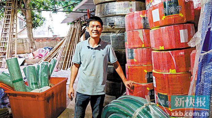陈大林的店铺位于下桥镇车来车往的街道旁,乍一看是一家五金店,实际上他还经营着各类农资。“这款滴灌带特别受农户欢迎,从去年开始进货,在我们这里卖得很好。”