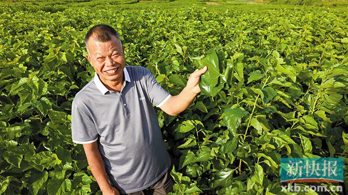 1989年左右,他便在自家田地里种起桑树、屋子里养起蚕,凭借着对桑蚕的热情和耐心,黄胜传慢慢摸索出种养心得,逐步成为种养大户。“后来他就提供种苗给附近的村民种,谁家的蚕宝宝有什么问题,他也热心提供技术指导。”当地农业局工作人员介绍到。由此,信桥村桑田开始逐步扩大,养蚕的人家也越来越多。“村里22个自然村,有18个村的乡亲都种桑养蚕,从这儿一片片连过去都是桑田,共有1万多亩。”站在半人高的桑树旁,黄胜传说道,身后尽是绿桑叶,望不到边。