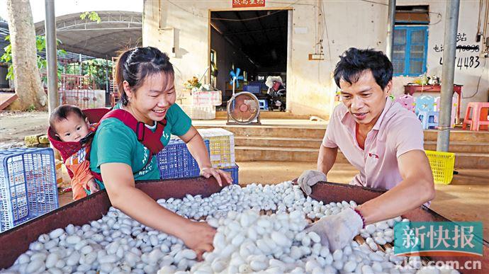 从“接天桑叶无穷碧”的田间地头到紧张整理白色蚕茧的加工集散车间,湛江市徐闻县下桥镇信桥村的黄胜传始终精神饱满、干劲十足,指着烘干区旁已经收拾出的空地,他说,明年村里将在这里建起自己的蚕丝被加工车间,话语里满是期待;彼时,陈大林正在自家的店铺里忙碌,近期通过金融帮扶贷到38万元款项的他,赶在九月、十月当地农户集中耕种的时节进了一批农用物资,不仅及时满足了农户生产需求,店铺营业额也达到理想……这是下桥镇农业生产的侧面。