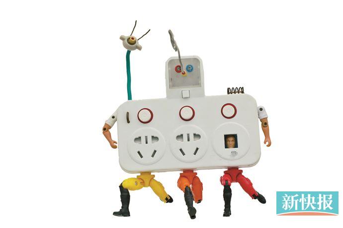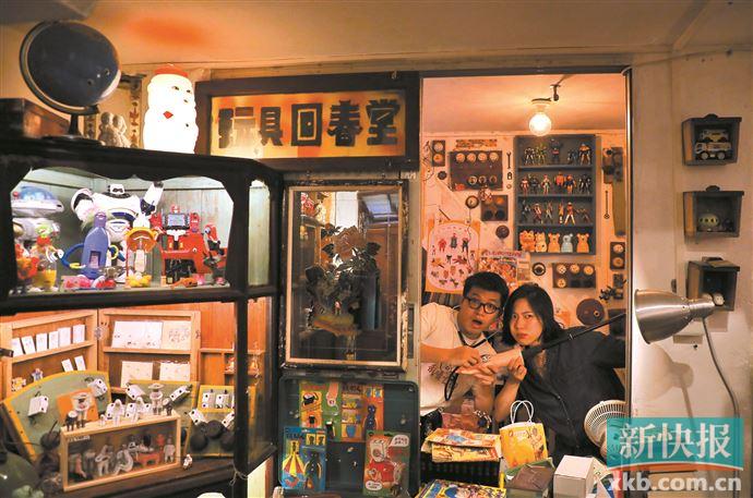 往这个城市中心深处走去,路过摆摊阿姨的牛杂、糖水和墙壁上长出的青苔和鲜花,最后停留在一间老房的一楼。轻轻推开木门,你会看到满满的玩具。充满污渍的插排长出了眼睛和四肢,蓝色的塑料瓶先生挠着爆炸的头发……在这些覆满尘土、充满刮痕、原本被遗弃的老物件中,年轻的情侣王一木(男)、林坚硬(女)拿着胶水、螺丝、金属线头探出头来:“欢迎来到玩具回春堂。”