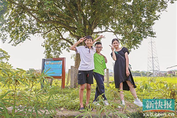 在八甲镇澄垌村田间地头,新快报记者发现了一棵体型巨大的古树猪血木,树下,竖着“国家一级重点保护植物”的牌子,几个小朋友玩得不亦乐乎。