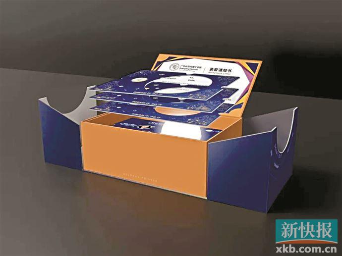 三层礼盒,层层惊喜。广东以色列理工学院今年的录取通知书以“追逐星光”为主题,寓意在科学精神的指引下,广以人能成为一颗未来之星,并发出属于自己的光芒。礼盒外观是一道道镭射线条,印有广以校训——Dream it. Do it.