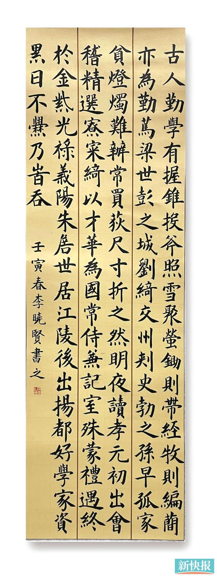 李志东:有些个性非常强的古代书法作品并不适合初学者。中小学生书法学习,个人建议,最好从颜真卿、欧阳询、柳公权、赵孟頫等经典楷书大家中选一家适合自己审美趣味的入手,写规范字,掌握好字形结构,用笔方法、打牢基础。对这些方面的考核方式,我认为应该是必修科而不是选修课,成绩算入学分,这样有助于鞭策学生更主动学习。