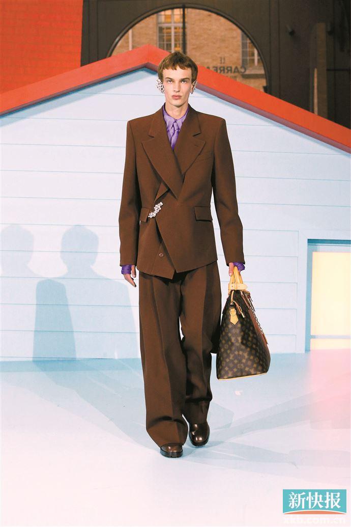 Louis Vuitton、TomFord等品牌2022秋冬男女装中都能看到多套深橡木色单品的演绎,小面积搭配俏皮粉蜡色和季节性亮色如绿色、黄色、蓝色、紫色等,成熟稳重气质得以保持,同时又彰显时髦特性。