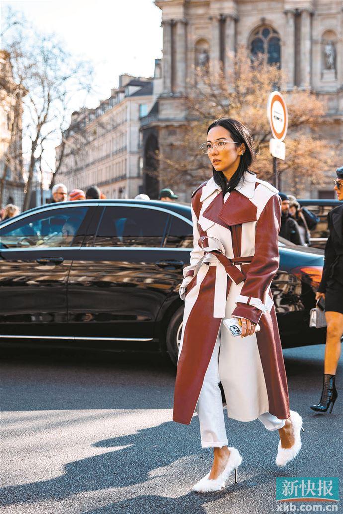 如果面料本身就显厚重,选低饱和度色彩会减少膨胀感,同时其它衣物配饰也要偏搭更轻盈且修身的。
