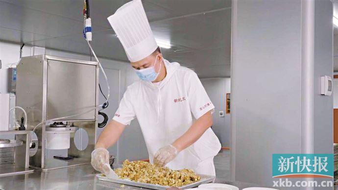 又过了23年,以前的师兄弟很多已改行,但冯新明还在坚持。他说:“月饼制作手艺是记忆也是情怀,我的心愿就是好好地把师傅留下的技艺传承下去。”冯新明带起了自己的徒弟,一个是新纪元食品厂的厂长,一个是他的儿子。他的儿子从初中开始跟着他学习手艺,如今大学毕业,选择回到生产车间传承手艺。