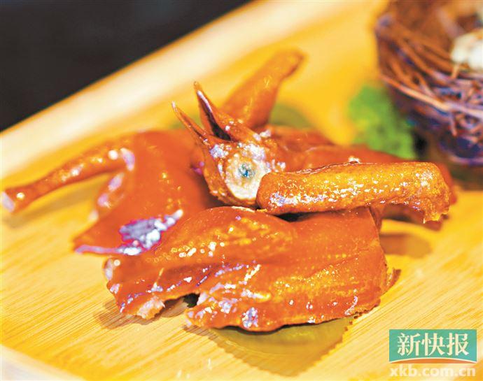 本源出自粤菜传统菜品红烧乳鸽,别致之处在于在烹制过程中林师傅加入了荔枝果肉和荔枝酒去腌制乳鸽,如此炮制的乳鸽在传统红烧乳鸽的皮脆、肉嫩且多汁的基础上,口感带了些荔枝的味道,风味比较特别。