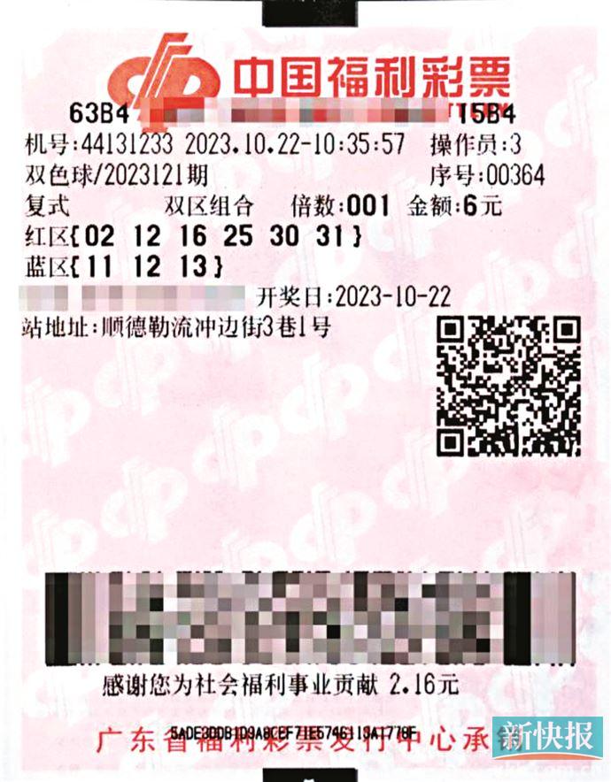 当晚,福利彩票双色球第23121期开奖中,当期全国共中出8注780万多元一等奖,其中1注花落佛山顺德区勒流街道44131233福彩销售站点,中奖彩票是一张投注金额为6元的“6+3”复式票,共中出1注一等奖,2注二等奖,奖金合计833万多元。这是继10月15日佛山幸运购彩者中出快乐8游戏508万元大奖后,佛山再次中出福彩大奖。