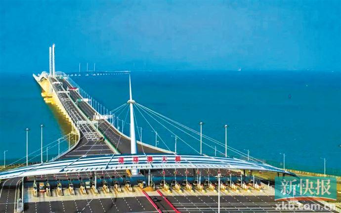 经过收费站,港珠澳大桥主桥及海上风光犹如美丽画卷徐徐迎面而来。