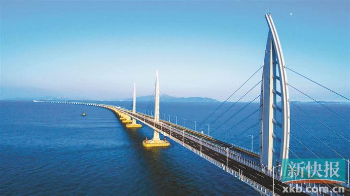九洲桥是港珠澳大桥靠近珠海、澳门口岸的通航孔桥,汽车行驶在大桥上,透过车窗映入眼帘是桥上的两座桥塔,造型灵感源自风帆,寓意“扬帆远航,一帆风顺”。
