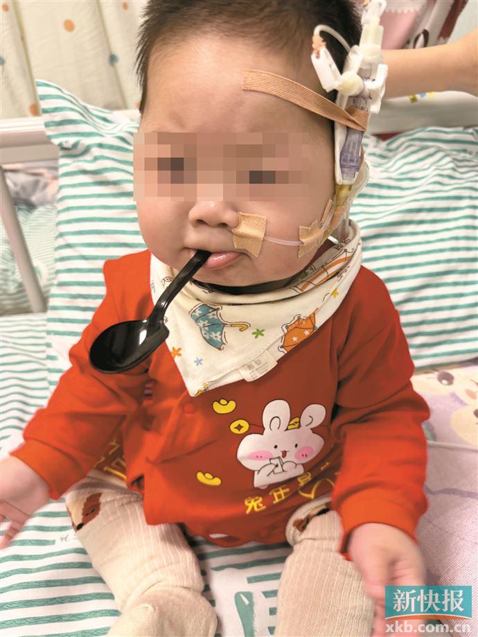 治疗必须按部就班,针对一项项问题处理。嘉佑在ICU监护治疗足足4个月,去年5月才稳住病情。医生告诉阿凯,宝宝身体营养吸收效果欠佳,暂时只能保守治疗,还叮嘱他们,孩子情况改善之前,都要住院。宝宝尚小,离不开父母照顾。阿凯干脆辞掉梅州的厨师工作,全身心在广州陪医,和妻子配合照顾嘉佑。