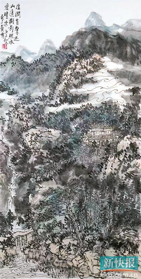 吴子英的作品,既能看到古人笔墨影迹,也有诗词的意境表现,而书画同源的关系,更被表现得入型入格,作为当代的山水画家,吴子英也清楚,在走近古人笔意时,也得及时抽身回望时代的发展,因而,在他的作品中,远看古韵十足,但细看却不乏现代灵动的用笔,无论是在用色的改变还是造型上,也多有一些现代艺术的痕迹。
