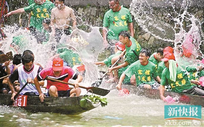 “洗过龙舟水,一年顺风又顺水。”唛哥说,扒龙舟时,最热闹的是泼龙舟水、游龙舟水、浸龙舟水,因为龙舟寓意吉祥,人们认为龙舟水是“大吉水”。