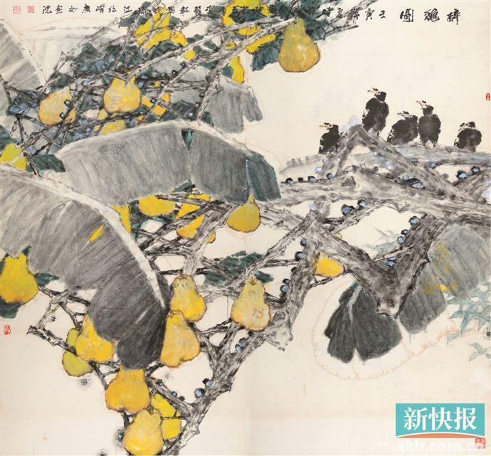 从油画、水彩到中国画题材的山水、继而花鸟,为何会有这样的转变?李醒韬介绍,因为油画水彩都是外来画种,它们更追求造型、体积、色彩、光影,而中国画则追求意境、诗意,笔墨不但是中国画的根,更是表达传统文化最直接的方式。而谈及为何从山水转到水乡乃至花鸟,李醒韬表示,在转到中国画创作之后,自然就需要考虑定位问题,“岭南的地理环境不像北方,这里缺乏崇山峻岭,山水题材并非是这里的画家的优势,南方水多,尤其有水乡特色,我便决定从山水转到水乡画的创作上。但探索一段时间之后,发现水乡题材也很难‘大气’,便干脆转到花鸟创作,但我并没有选择了多数人热爱的牡丹、荷花、梅花等题材上,而是选择日常所见的岭南佳果,荔枝、芒果、枇杷……越画越发现这才是一个很丰富的题材。”