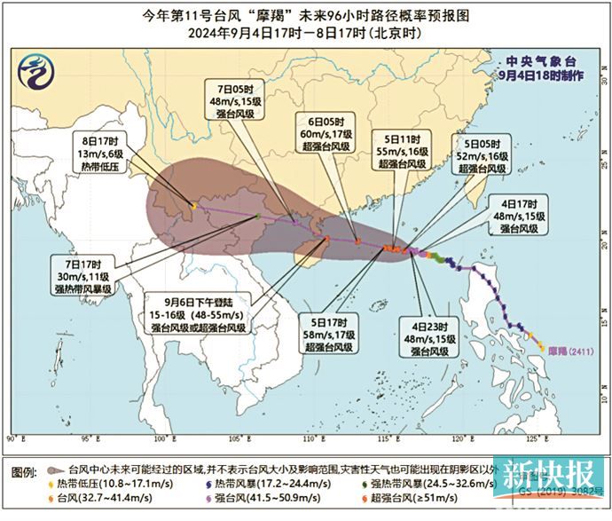 “摩羯”正在逼近,截至4日晚,“摩羯”已经加强为强台风级,未来强度还会继续加强,预计将于6日在海南万宁到广东阳江阳西一带沿海登陆(强台风级或超强台风级,14~16级)。