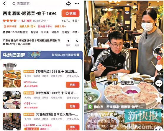 据冯善君介绍,团购初步上线时,就带动了大量新客到店,尤其是在2020-2021年,当时受疫情影响,餐饮行业普遍有些低迷,西南酒家却因为团购保持住了人气和销售额。198元的全蟹宴在抖音销量很好,卖了超过8000份。很多新客都通过美食达人的推荐购买团购来尝试,到店后又被琳琅满目的特色菜吸引,团购外的菜品销售也因此上涨不少。