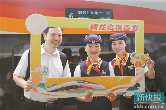 当天,新快报记者在广州东站看到,谢先生一家三口特意穿上亲子装来体验梅龙高铁首趟列车G8494次。他们一直坐到梅州西站。“第一次带一岁半的小宝宝回梅州看太婆,很高兴。以前我回家都是坐动车,整个路程需要4个小时,这次坐高铁只需要两个小时,特别期待。”谢先生说。