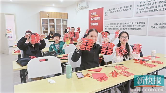 广州文化集团艺术发展有限公司负责人槐涛介绍道,今年过年,艺养中心连续六天开展了六种不同类别的公益性群众文化活动:书法家现场挥毫送福、大家围坐一起品茶暖心、导师教大家手工DIY剪窗花、非遗传承人技艺献爱、科技小课堂教Al、街坊厨神厨艺迎客等。