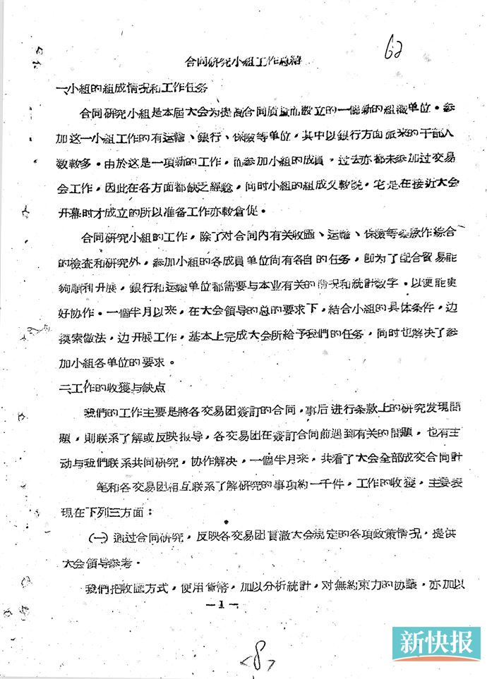 第四和第五件档案,有关信誉。经商之道,贵在诚信。作为新中国的一张金色“名片”,广交会的信誉备受周总理珍视。周总理反复告诫各级干部一定要“重合同,守信用”。1958年10月15日至11月30日举行的第四届广交会专设合同研究小组。在《合同研究小组工作总结》中提到,“合同研究小组是本届大会为提高合同质量而设立的一个新的组织单位”。