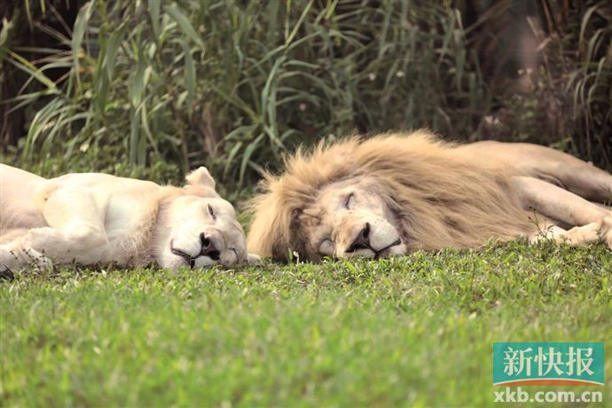 非洲狮“阿杭”“贝贝”一天也会睡上十几个小时,感情甜蜜的夫妇俩常常相伴入眠,喜欢四肢伸展,让身体放松,仰卧或者侧卧睡觉。