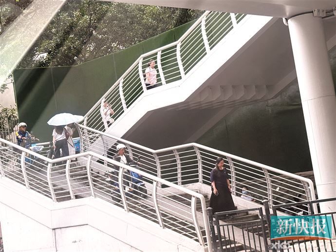 “每天走这个天桥就像‘渡劫’。”在附近上班的李小姐撑着遮阳伞边走边告诉记者,这座没有遮阳棚的天桥是周边数万上班族、就医患者和购物市民的必经之路。记者注意到,短短十分钟内就有超过200人次通过天桥,其中不乏推着婴儿车的家长和拄着拐杖的老人。
