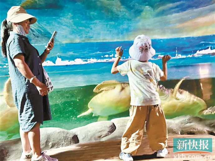 踏进模拟蔚蓝海洋的海洋馆,小朋友因看到五光十色的水母、精灵温顺的白鲸等海洋生物而雀跃兴奋,迫不及待地奔赴。小洋(化名)满怀着对于海洋世界的期待,兴奋地问家长是否能在海洋馆与神秘生物相遇;乐乐妈妈惊喜地发现,自家女儿对眼前的巨大海龟充满了好奇。