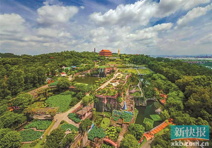 睡莲芬芳、石壁陡峭、矿湖深邃……位于番禺区石楼镇的广州莲花山,登高俯瞰即是珠江口和狮子洋,这里山海相连,一眼可望到虎门大桥。这里是岭南地区莲花品种最为齐全的赏荷胜地,有1200个品种的荷花、600多个品种的睡莲;这里还保留着广东境内已知的年代最早、规模最大、保存最好的古代采石场遗址。
