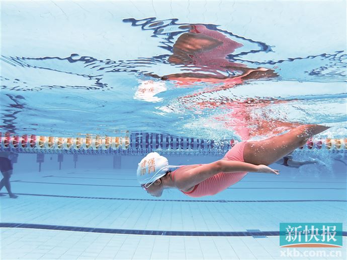 过了不久,晴晴又初步学会了仰泳,让她多了一分成就感,有了更多继续练习游泳的动力。当初她趴在泳池边上羡慕别人可以做出来的动作——头顶着水瓶仰泳,戴着脚蹼打蝶泳腿,如今她都练上了。“自己都觉得自己很帅啊!”晴晴兴奋地说。