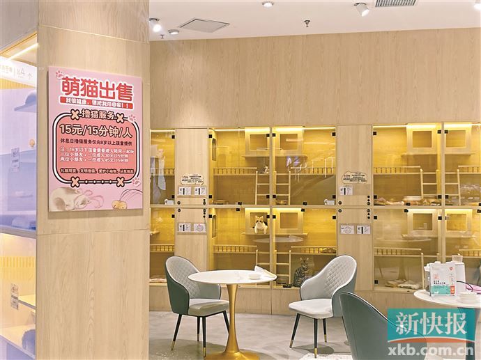 记者调查发现,目前不少商场都开设了宠物体验馆,消费者通常需要购买饮品或宠物喂食,达到店内最低消费才能与宠物近距离接触、互动。以猫咖为例,不同店铺收费标准不一,线上团购的单人单次体验价格普遍在20至70元不等,部分商家还限时收费。记者实地走访的一家猫咖规定,孩童收费15元/15分钟/人,成人则为30元/分钟/人。除互动体验外,一些商家还拓展了宠物活体销售及宠物用品、宠物洗护、宠物寄养等相关业务。