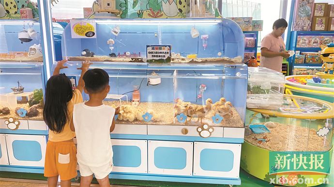 此外,商场中也常见一些临时设置的宠物互动项目,多以兔子、仓鼠、豚鼠、芦丁鸡等小型动物为主。以记者走访的项目为例,此类投喂体验38元/次,充值VIP可享8折优惠,展台还有小鸡等活体售卖,单价15元/只。这类项目多与玩具桌、钓鱼池、手工DIY等儿童娱乐项目同时出现,吸引了不少家庭带娃体验。