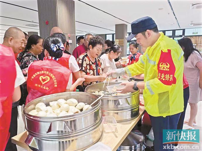 渝湛、湛徐高速迅速启动应急预案,及时将滞留人员引导至服务区提前设置的应急安置点,供司乘休息避险。同时,“湛道”志愿服务队准备炒饭、馒头、饺子等热食以及泡面、八宝粥等便携食品,为滞留的司乘送上台风天里的暖心餐。