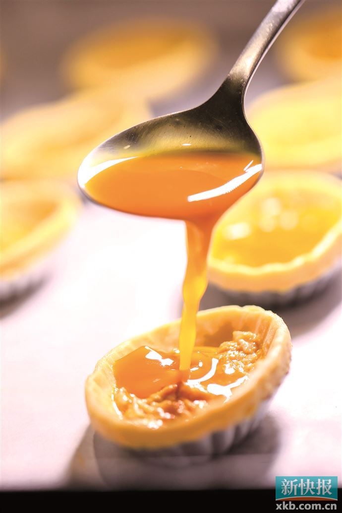 传统广式茶点在这座大型“宇宙飞船”中粉墨登场所产生的强烈对撞,直如三体带来的冲击……广式点心的千变万化也赋予怀旧情怀更多“层次”,将手拆蟹粉融入蛋挞制作的尝试,选当季鲜活大闸蟹,每天手工生拆取肉取膏,蒸制后平铺在蛋挞内馅表层,一方面保留了蛋挞“蛋香为本”的基底,一方面延续了广式蛋挞“外酥内软”的经典结构,味型上蟹粉的咸鲜与蛋奶的鲜香再加上烤制好后撒上的橙皮丝,给“老”味道增添了缕缕新意。