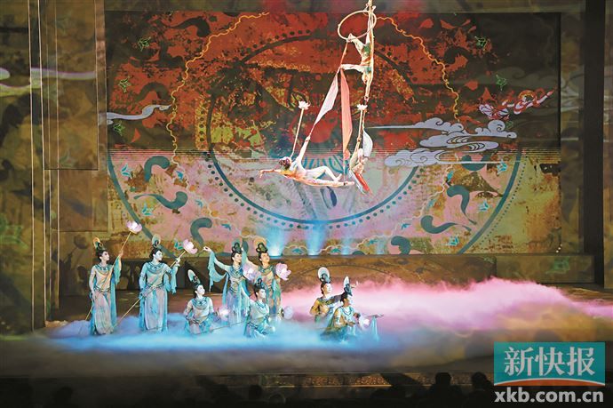 在呈现形式上,除了现代化的灯光、音效,全剧还综合运用了当下最先进的数字科技,通过虚幻引擎软件、动作捕捉技术、虚拟拍摄、LED广色域屏幕等前沿多媒体制作技术,营造出沉浸式的跨时空氛围,“飞天”演员带领观众飞过天山雪峰、龟兹千佛洞、楼兰古城。
