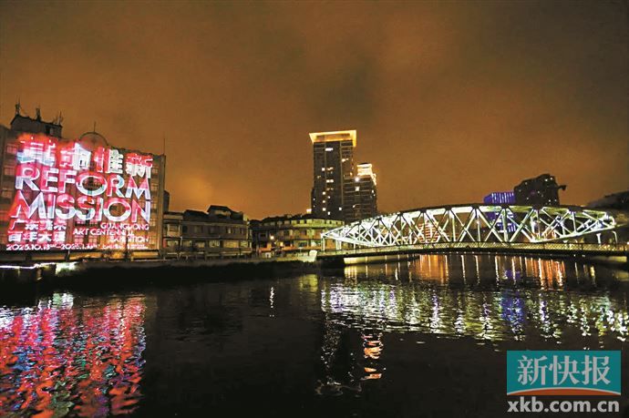 作为“其命惟新——广东美术百年大展”预热活动之一,苏州河畔的“闪亮·上海 静安光影季”在国庆中秋长假期间的每天18时至22时,上演了广东美术名家名作光影秀,吸引众多市民、游客驻足观看。