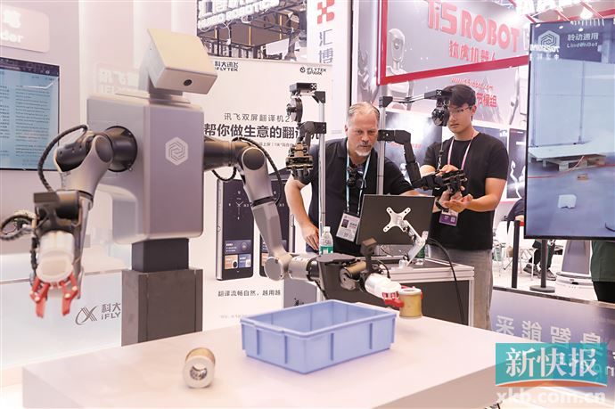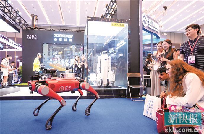 首次进驻服务机器人展区的视源股份,带来在世界机器人大会上获奖的MAXHUB X7工业级四足机器人,以及可完成穿针、搭积木等高精度动作的智能柔性机械臂,吸引众多境外客商现场互动体验。视源股份现场工作人员韩旭辉介绍,现场不少海外客商对其展示的产品产生浓厚的兴趣,“从广交会开始到现在,我们已经把现场所有的现货库存销售完毕了,如专门为海外市场打造的一款适合3-8岁儿童的产品美国市场售价99美元,在广交会现场以70元促销,非常受欢迎。”