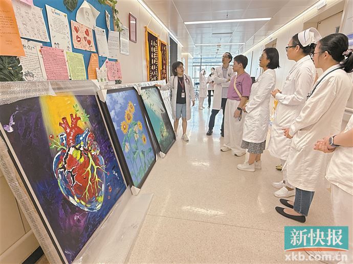 10月23日,这些画作挂在救治小宣的中山大学附属第一医院心血管儿科住院病区。“医院里面有许多像我一样的家长,我希望以画为突破,治疗路上和大家一同共勉。”她说。