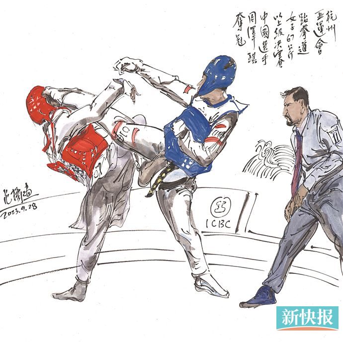 这是如何做到的?为何能这么快完成?“第一,我有兴趣画,第二,我了解体育,热爱体育运动,所以,我也比一般的人都要清楚应该怎样画,如何更能抓住运动员瞬间的神采。”范扬向记者解开了疑惑。