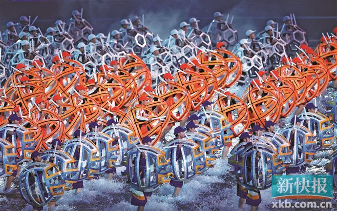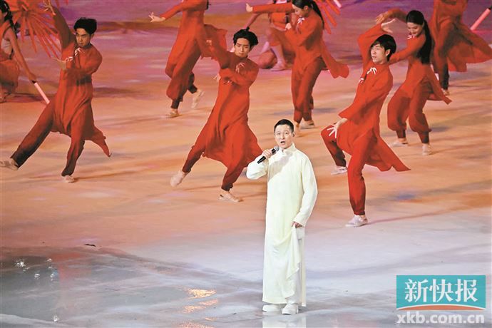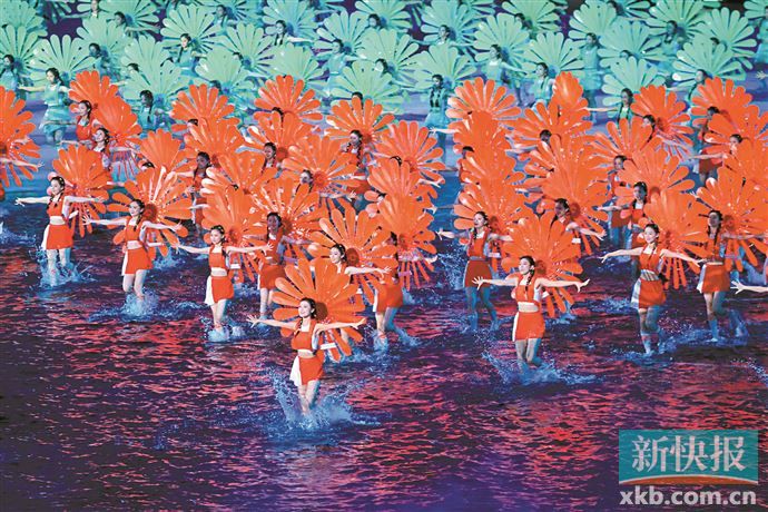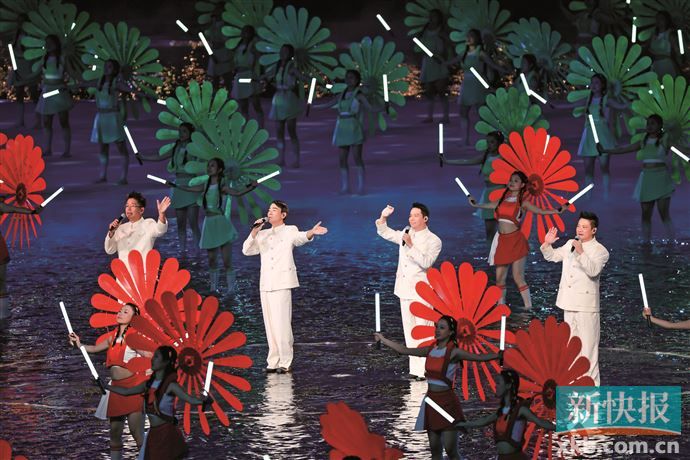 随着场内的灯光变成红色,一朵朵巨型木棉花在开幕式会场绽放。刘德华以《中国人》歌曲升华“同心共筑中国梦”的主题。