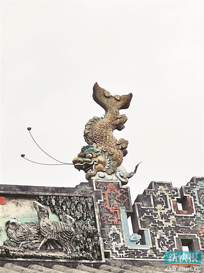 此外,鳌鱼还是广州市番禺区的“明星”:大岭村的古祠堂屋、沙涌村的广琚江公祠屋檐、番禺石楼镇善世堂的正脊两端等都有鳌鱼的足迹。