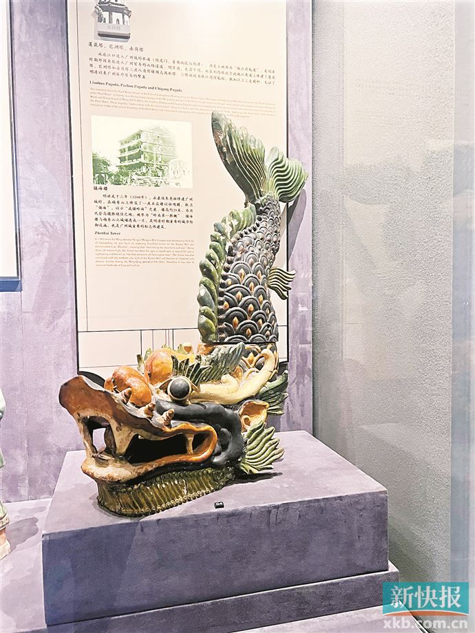 “广州博物馆的镇馆宝物之一就有石湾窑鳌鱼,它是明万历年间佛山霍韬祠堂脊饰两端的装饰物,为一级文物。”广州博物馆副馆长朱晓秋介绍,石湾窑鳌鱼文物分头、身两部分,头部似狮子,张口露齿,突眼弯角,身体浑圆,遍体鱼鳞,尾巴上翘,通体施黄、绿、紫三色,色彩斑斓,有强烈的艺术效果。其色彩可与石湾窑生产的三彩器互相印证,可考证是明清岭南地区著名的陶瓷窑口——佛山石湾窑早期的器物。