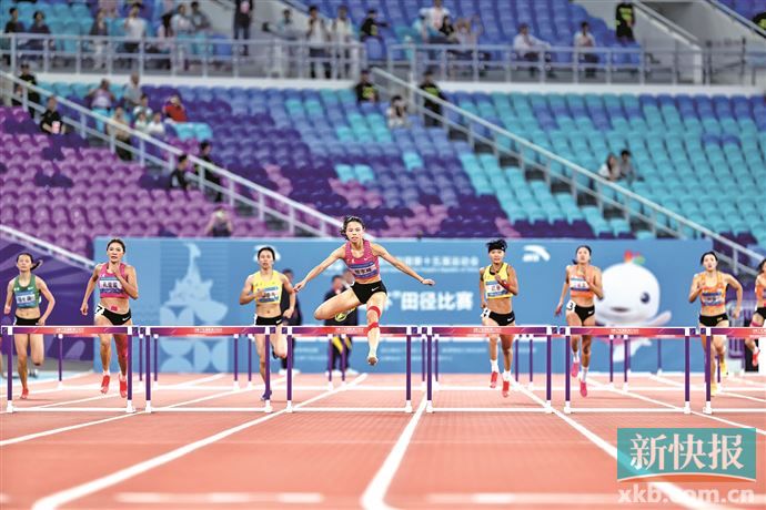 新快报讯 记者黄闻禹报道 11月17日晚,十五运会女子400米栏决赛在广东省奥体中心体育场举行。决赛中广东队的莫家蝶跑出55秒19的成绩,轻松摘得该项目金牌。另外一名广东队队员孔莹蓥以56秒10摘银。福建选手欧莹则以57秒29的成绩夺得铜牌。