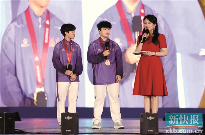 随后,勇夺武术套路男子南拳南刀南棍全能金牌的李剑鸣,在举重女子76公斤级比赛中打破世界纪录的廖桂芳等多位冠军运动员登场,依次与观众见面,引起阵阵欢呼。“之前只能隔着屏幕看运动员拿冠军,今天能和他们近距离接触,我感觉好不真实啊!”一位来自广州越秀区东风东路小学的“全运志愿小记者”发出了感叹。