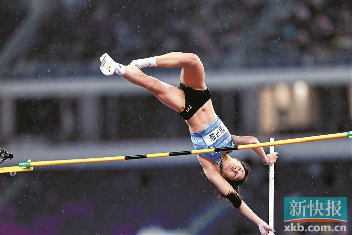 11月18日,十五运会女子撑杆跳高决赛在广州举行,这是安徽队选手张子璇在比赛中。新快报记者邓迪/摄影报道
