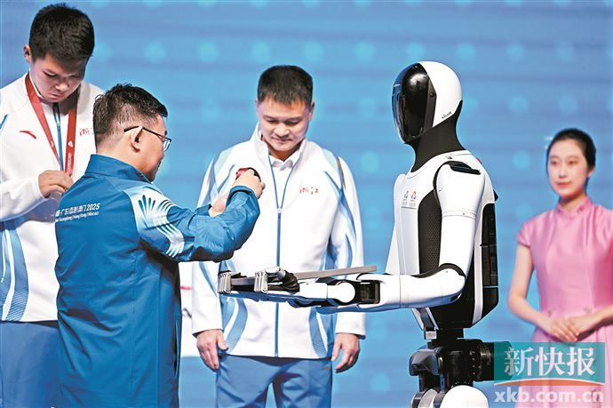 十五运会广东赛区执委会高科技产品展示专班副组长、广东省科学技术厅二级巡视员夏奇峰表示,采集十五运会“源火”火种的遥控潜水器“海马”号,是由广东自主研发、已经成功完成700多次科考下潜任务的“老将”。十五运会的“0号火炬手”,是深圳企业打造的全球首个5G-A人形机器人火炬手“夸父”。开幕式上首次采用了人形机器人“群体协同”奏响了千年礼乐,并在国际象棋、拳击比赛中化身为“颁奖助理”,充分验证了广东具身智能产品在超复杂环境下的稳定性与精确度。